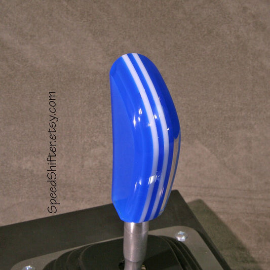 Handmade Tall Acrylic Shift Knob: White & Blue, Specific Thread Mount or Universal Fit