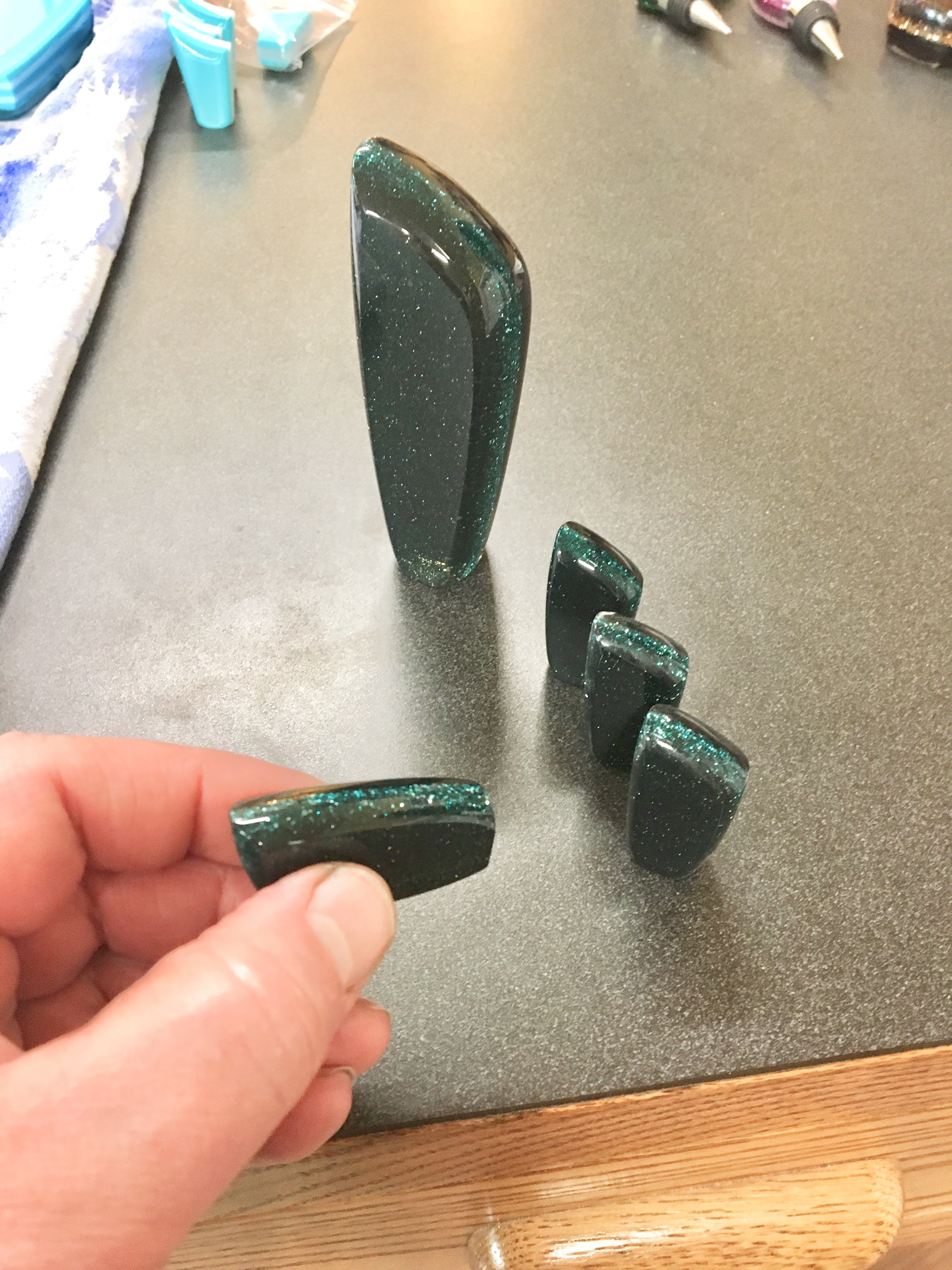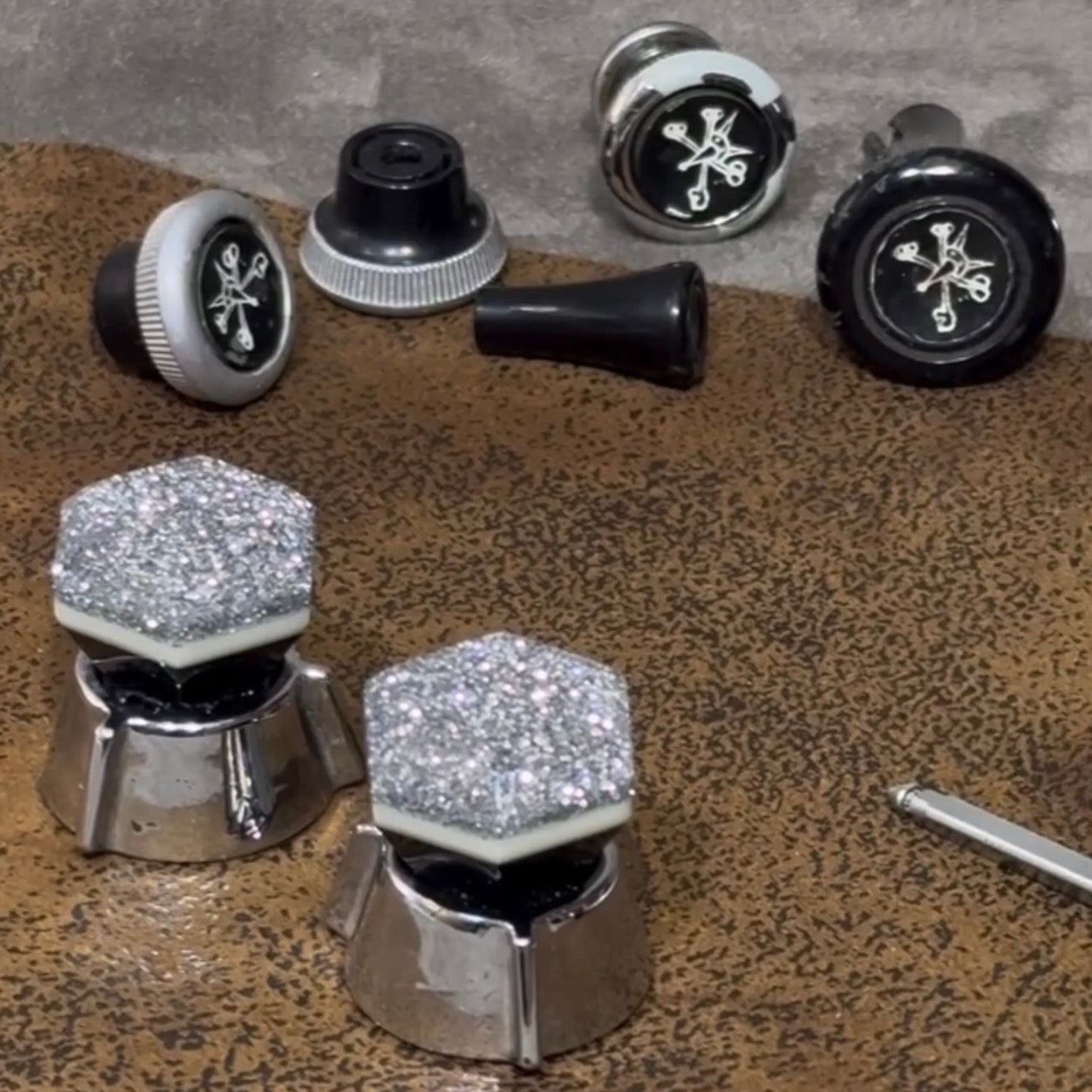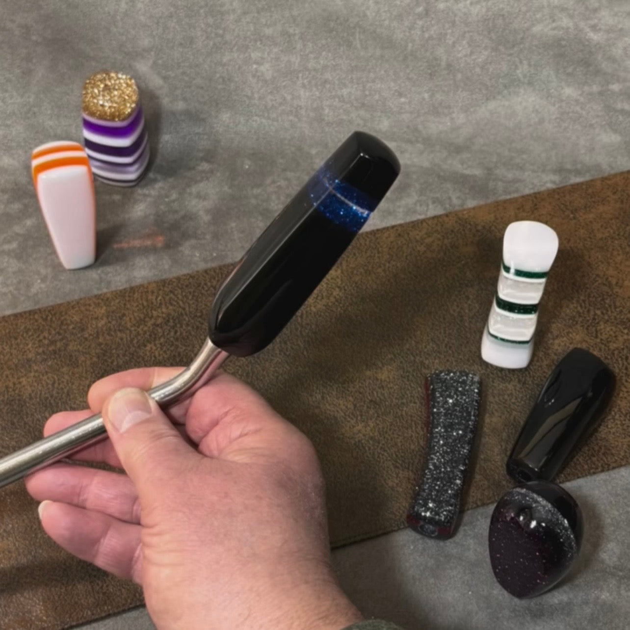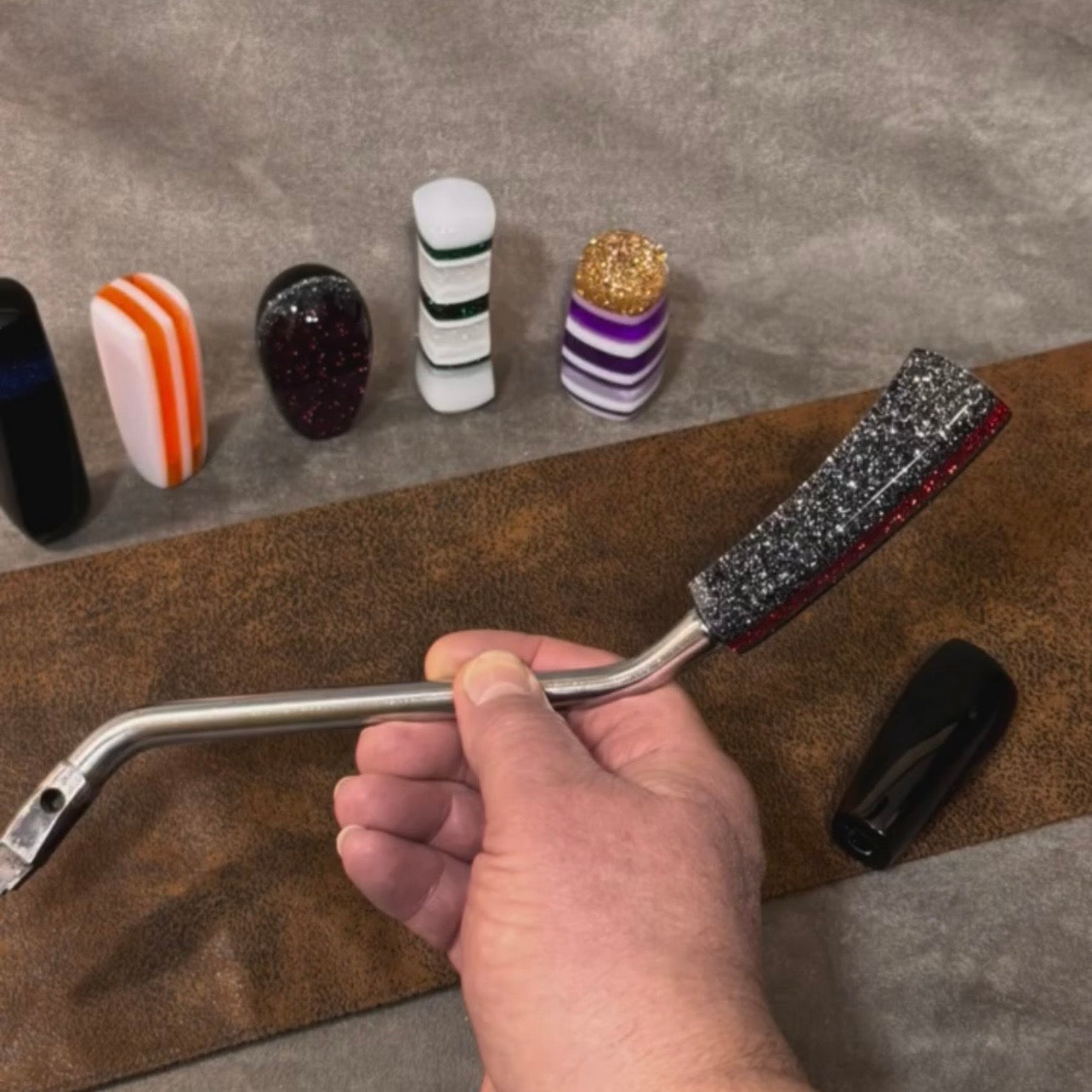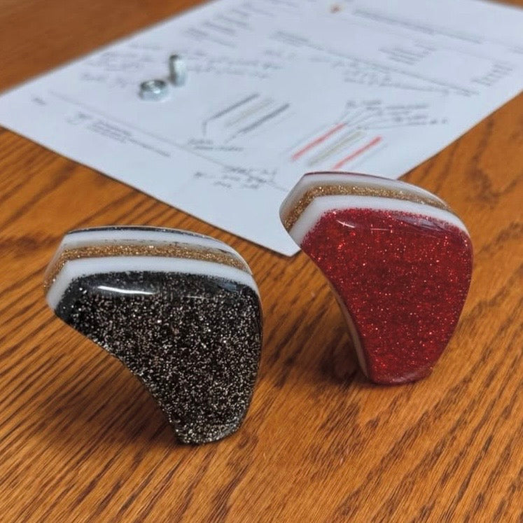 These handles and knobs are jewels for the interior of your car. I can custom create a shape or color to match your upholstery, interior colors, or exterior paint. Check out my 'Color Choices' page to see the possibilities - I can mail color samples.